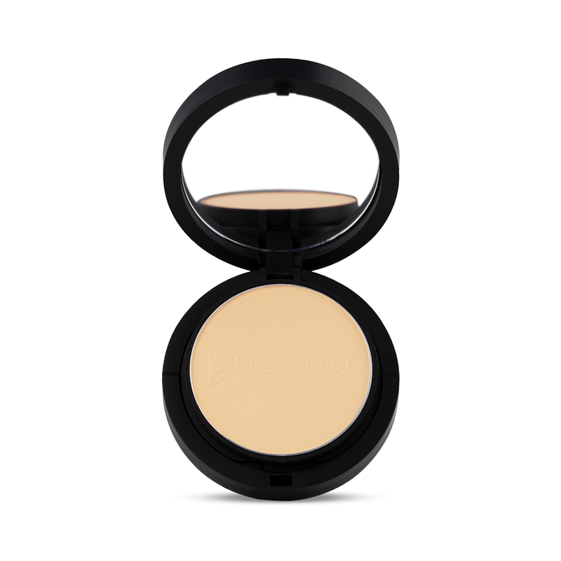 Character Cosmetics Compact Powder is a skin-perfecting powder that reduces shine, sets makeup for longer wear and adds a warm highlight to the skin. Creates a smooth base, is long-lasting, oil-controlling and suitable for subtle baking.