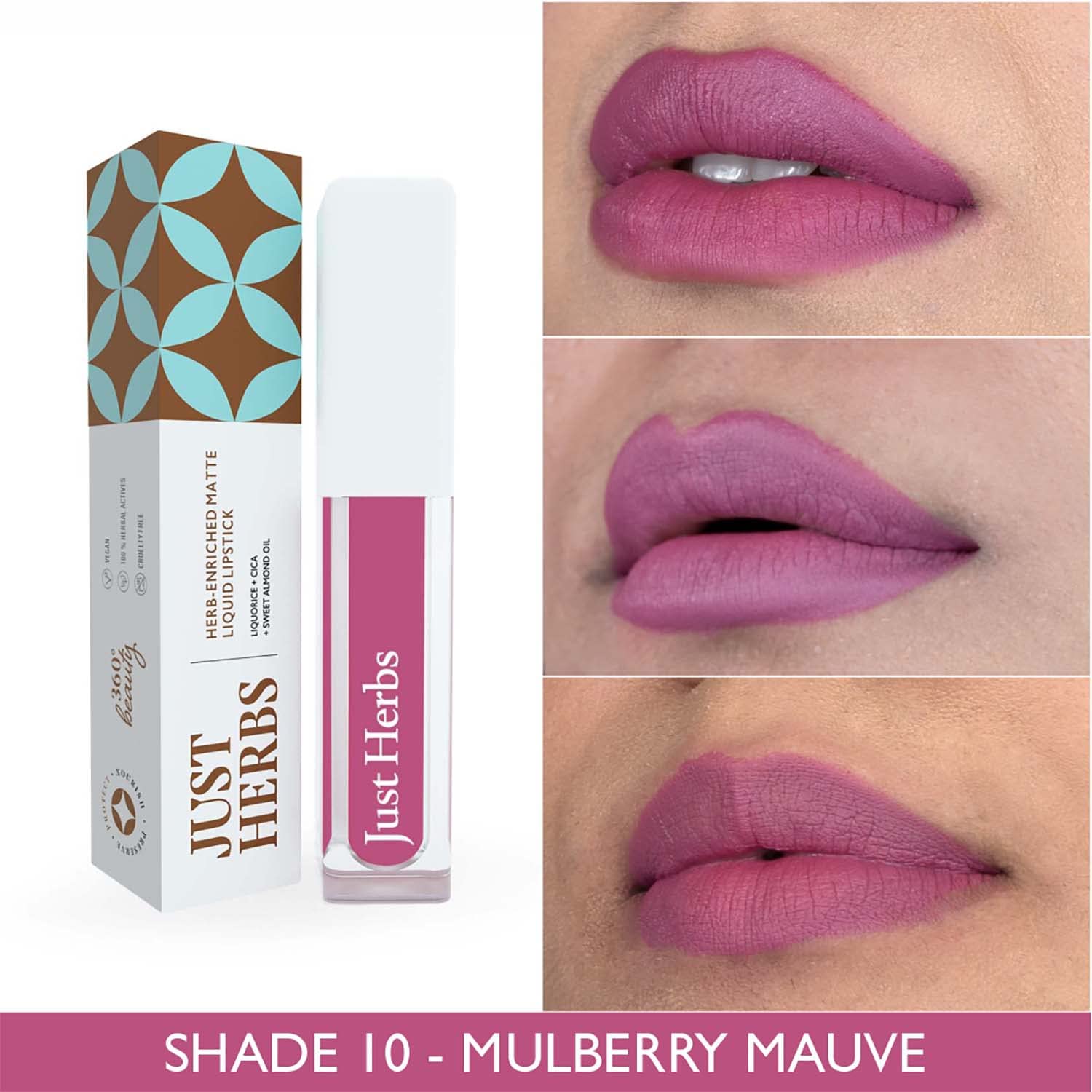 Just Herbs Ayurvedic Creamy Matte Long Lasting Liquid Lipstick, Lightweight & Hydrating Lip Colour With Liquorice & Sweet Almond Oil – Mulberry Mauve