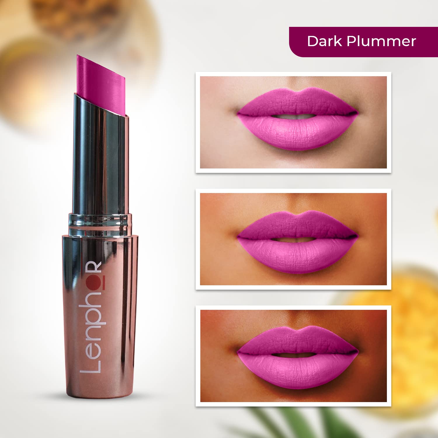 Lenphor Treasure Matte Lipstick, Long Lasting Lipstick For Professional Cosmetics For Women, Creamy Soft Lip Stick, Moisturizer Lip Gloss, Lipsticks For Women & Girls, Dark Plummer, 3gm