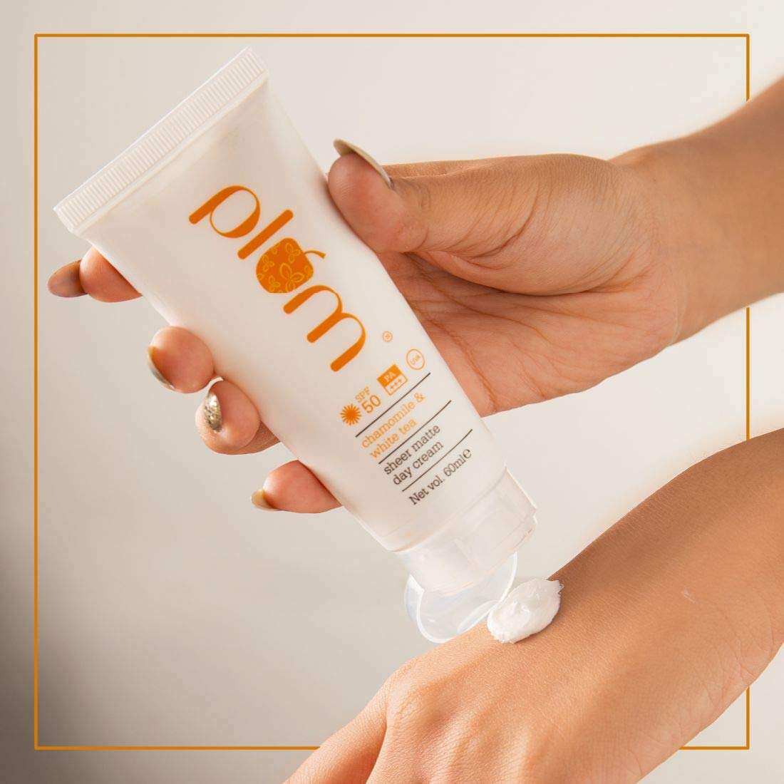 Plum Chamomile & White Tea Sheer Matte Day Cream SPF50 PA+++ | Lightweight Moisturizer | Broad Spectrum UVA/UVB Protection | For Normal To Combination Skin | 100% Vegan & Cruelty-Free | 60ml