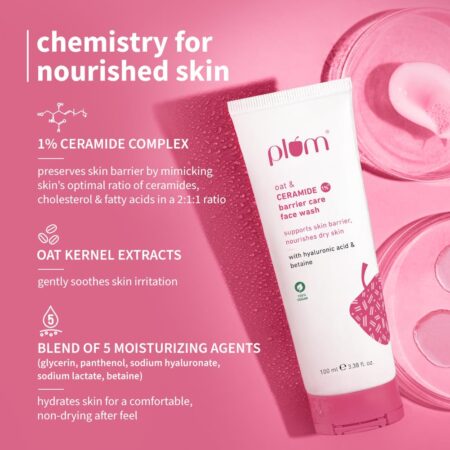 Plum Oat & 1% Ceramide Barrier Care Face Wash | Maintains & Preserves Skin Barrier | Hydrates & Nourishes Skin | Sulphate-free & Non-drying | For Normal, Dry skin | Women & Men | 100ml MRP: