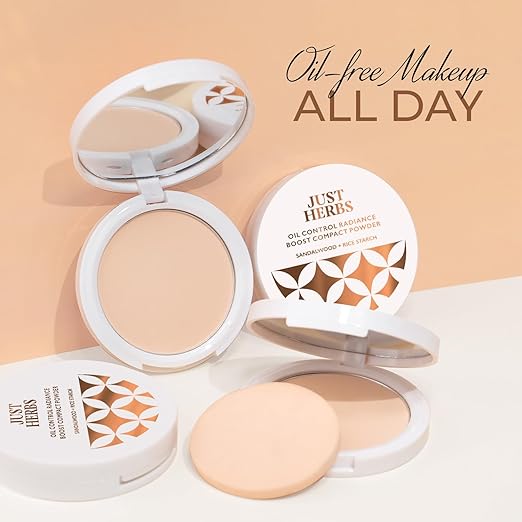 Just Herbs Oil Control Radiance Booster Age Defying Compact Powder For Face Makeup 9g- 01 Porcelain