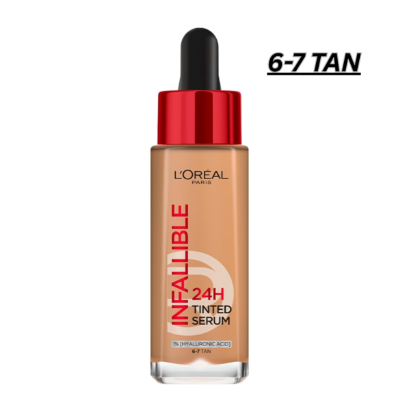 L’Oréal Paris Infallible 24H Tinted Serum Foundation, Light-weight Coverage, Dewy & Radiant Finish, Transfer-proof, 30ml ( 6-7 TAN)