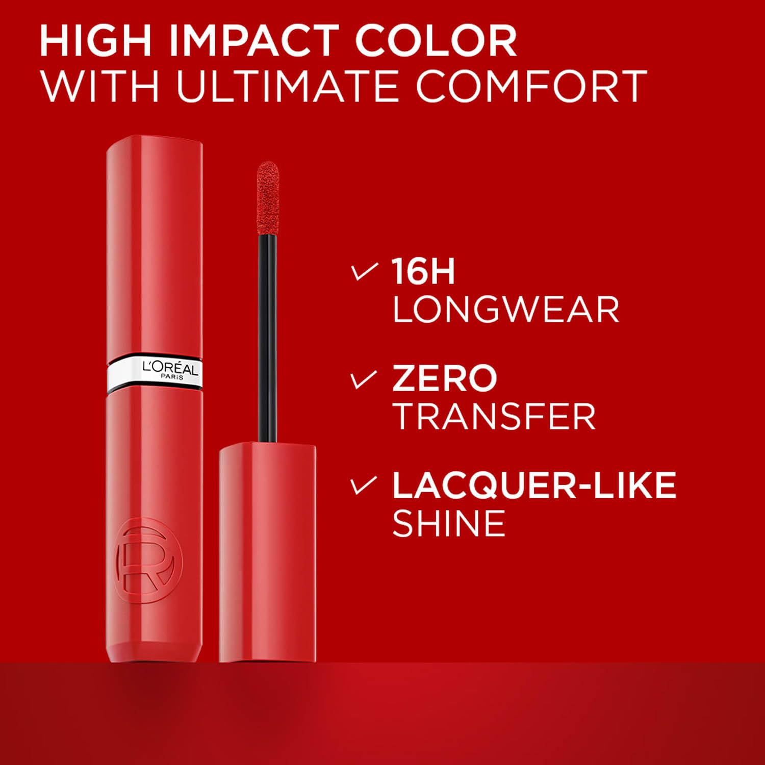 L’Oréal Paris Infallible Laque Resistance Lacquer-Like Shine Finish. 16H Longwear Lacquer Lipstick. High-impact Color, Zero Transfer – 420 Le Rouge Paris, 4ml