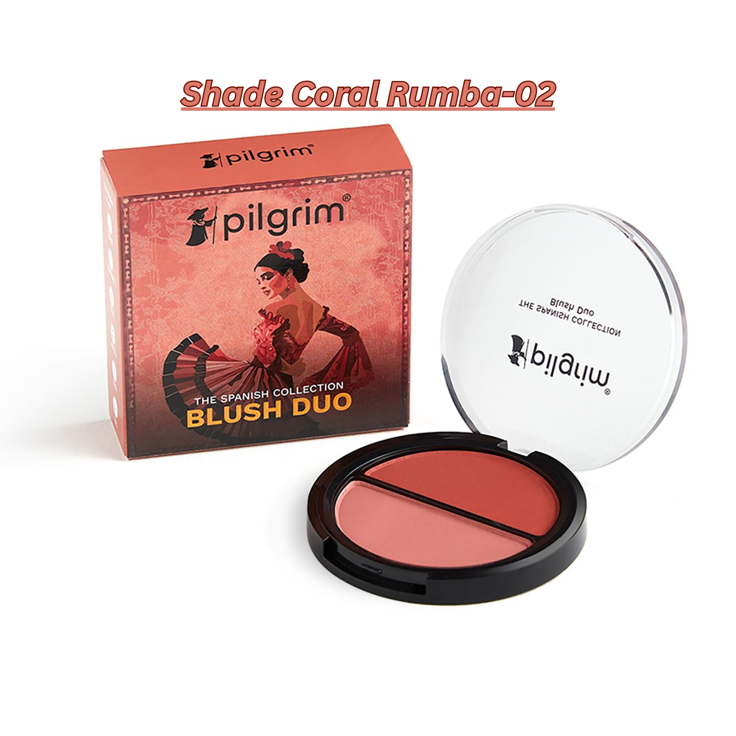 Pilgrim 2-IN-1 Blush Duo 9g | Highly Pigmented, Long-lasting, Buildable & Blendable | Goodness Of Rosehip Oil & Hydrating Squalane | All Skin Types | Shade Coral Rumba-02