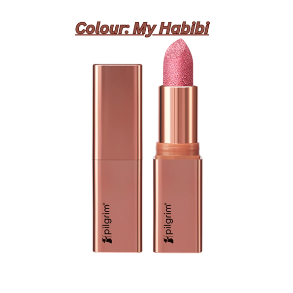 Pilgrim Glitter Lipstick For Women 4.2gm | Dubai Luxe Lifestyle – My Habibi Shade | Lipstick Infused With Vitamin E & Olive Oil | Glitter Formula With Matte Finish | Non Drying | All Skin Types