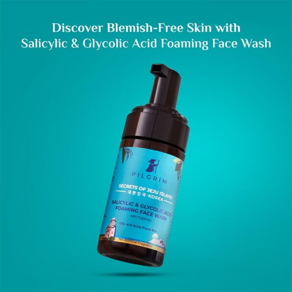 Pilgrim Korean 1.5% Salicylic(Bha) & 2% Glycolic Acid(Aha) Foaming Face Wash For Oily & Acne-Prone Skin | Glycolic & Salicylic Acid Face Wash | Men & Women | Korean Skin Care Products | 120 Ml