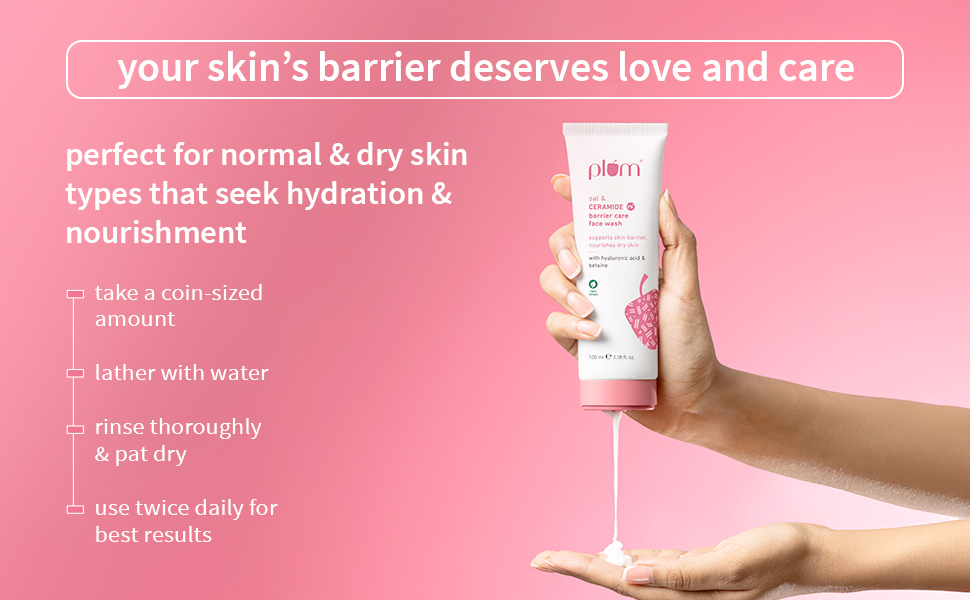 Plum Oat & 1% Ceramide Barrier Care Face Wash | Maintains & Preserves Skin Barrier | Hydrates & Nourishes Skin | Sulphate-free & Non-drying | For Normal, Dry Skin | Women & Men | 100ml